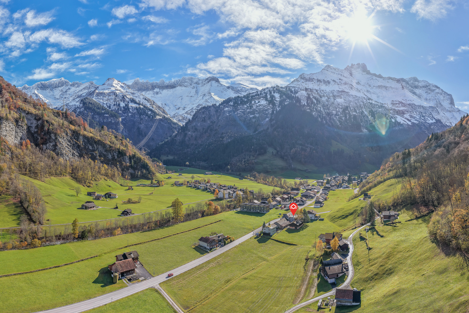Das charmante Wohnhaus befindet sich an alpiner Wohnlage am nördlichen Dorfeingang von Elm. Der Dorfladen im Dorfkern versorgt die Einwohner mit Frischwaren und Produkten für den täglichen Bedarf. Bushaltestelle, Kindergarten und Dorfladen sind bequem zu Fuss erreichbar. Primar- und Oberstufenschulen befinden sich in Engi und Matt. Die Sportbahnen Elm sind nur wenige Minuten entfernt. Für einen Grosseinkauf gelangen Sie innert 20 Minuten nach Schwanden. Auf die Autobahn A3 gelangen Sie 35 Minuten. Den Zürich HB erreichen Sie ab Schwanden ohne Umsteigen innert 75 Minuten.
