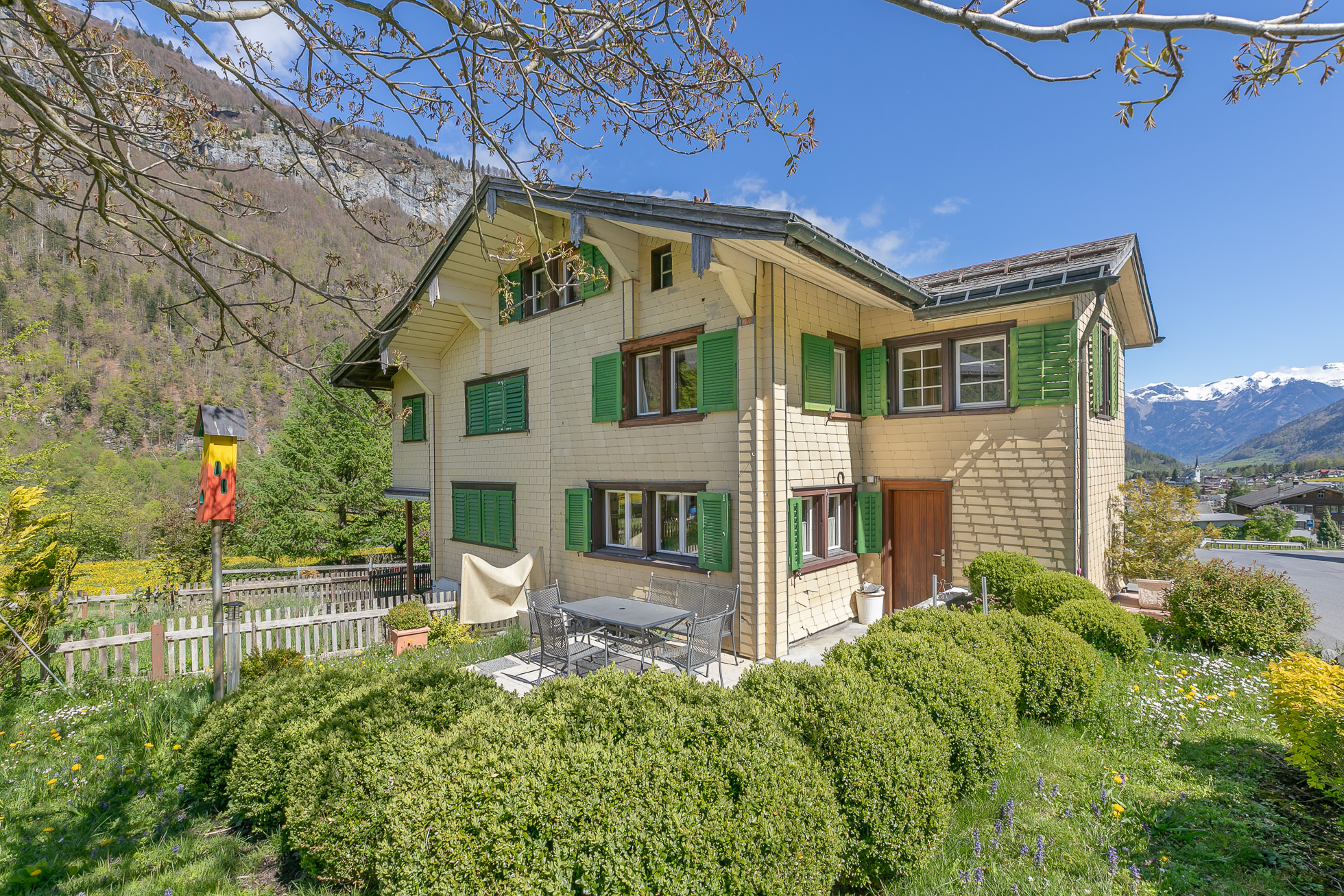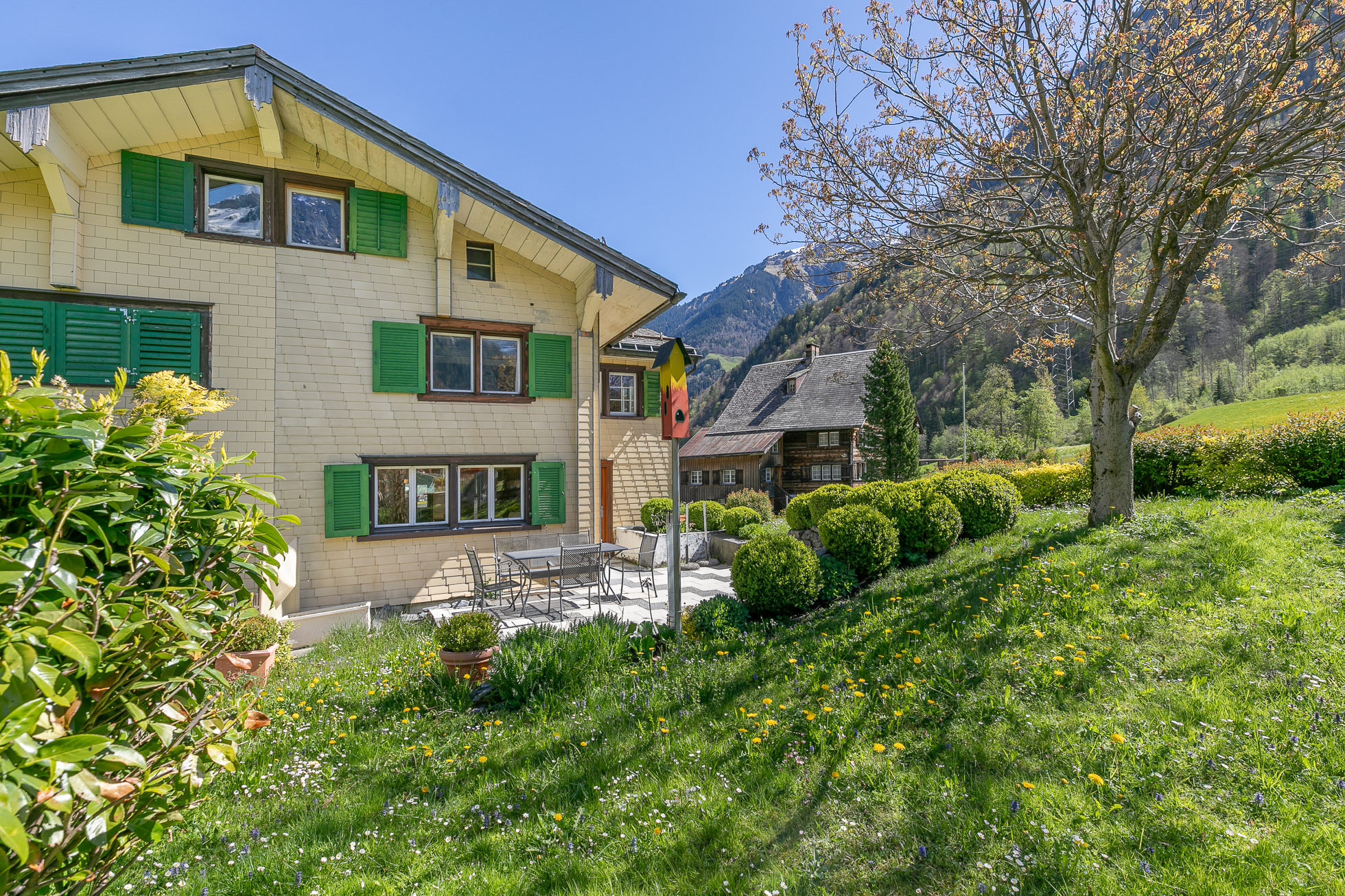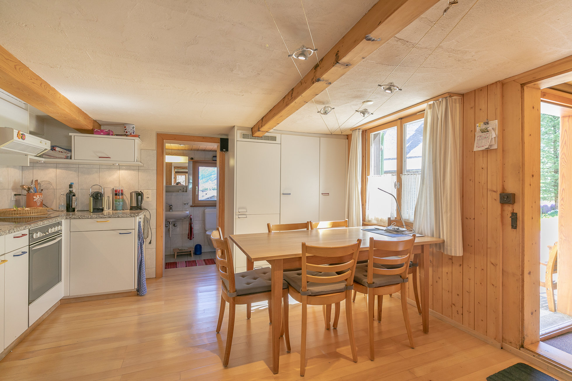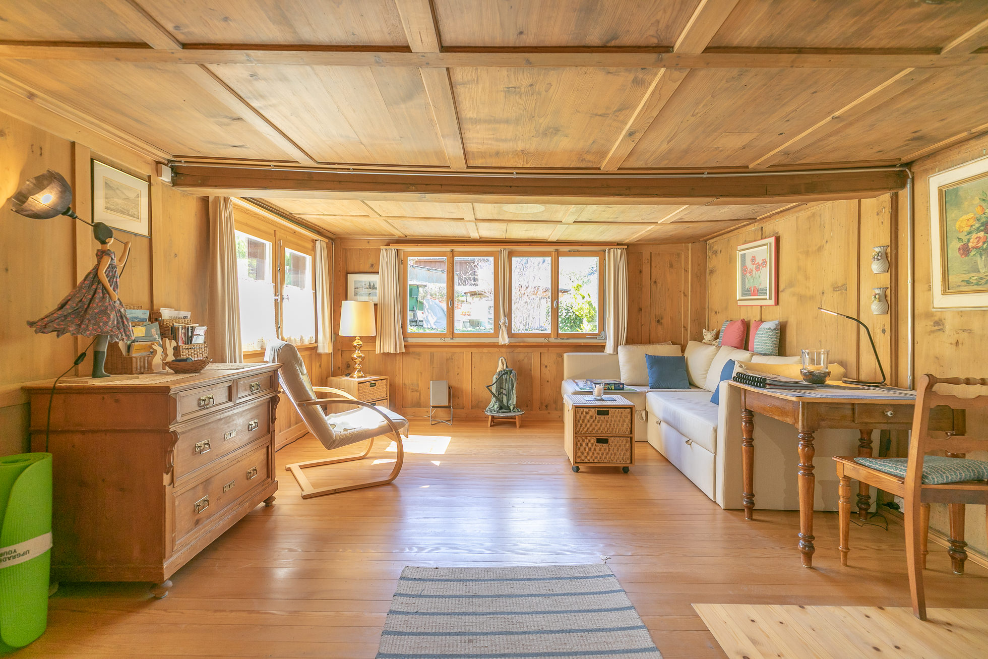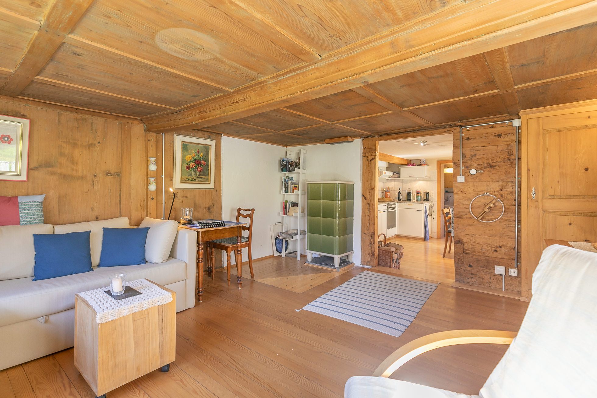 Die möblierte Liegenschaft überzeugt mit wunderschönen Details, traditionellen Wohnelementen und einem idyllischen Garten. In den vergangenen Jahren wurde das Haus als Atelier und Ferienresidenz genutzt – ein Ort, an dem sich Kreativität und Erholung ideal vereinen lässt. Im EG erwartet Sie der Wohnbereich, welcher mit Kachelofen und charaktervoller Altholzwand eine heimelige Atmosphäre ausstrahlt. Weiter bietet das EG eine vollausgestattete Küche und ein Badezimmer. Der Schlafbereich verteilt sich auf die oberen Geschosse und bietet drei helle Zimmer, Vorzimmer und Estrich mit zusätzlichem Stauraum. Abgeschlossen wird das Wohnprogramm mit den Kellerräumen im UG. Im Aussenbereich punktet das Haus mit einem idyllischen Gartensitzplatz mit Wiesenfläche und reich bepflanzter Umgebung. Parkmöglichkeiten finden sich im eigenen Carport mit Vorplatz.