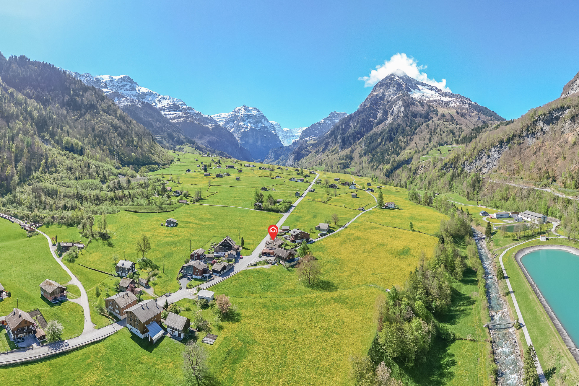 Das 4.5-Zi-DEFH liegt an sonniger Wohnlage am südlichen Dorfrand von Linthal. Einkaufsmöglichkeiten, Bushaltestelle und Restaurants befinden sich in Gehdistanz. Der Bahnhof, Velo- und Wanderwege, der Klausenpass sowie das Ski- und Erholungsgebiet Braunwald befinden sich in unmittelbarer Umgebung. Glarus ist innert 20 Minuten und der Autobahnanschluss A3 innert 30 Minuten erreichbar. Mit der S25 gelangen Sie ab Linthal bequem ohne Umsteigen an den Zürich HB.