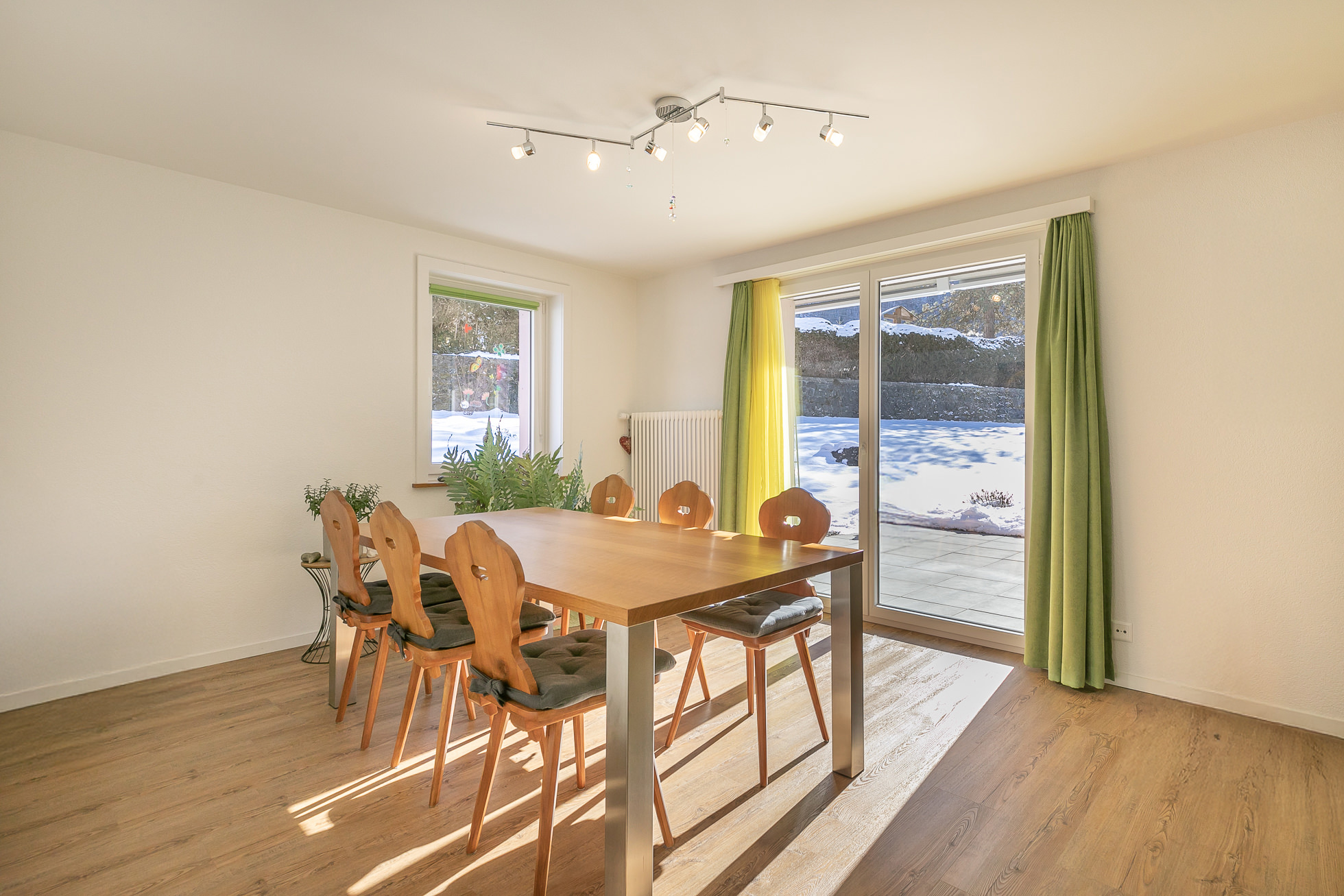 Im Jahr 2016 wurde die Liegenschaft umfassend erneuert und präsentiert sich heute in einem sehr gepflegten Zustand. Dank der familienfreundlichen Lage und dem zusätzlichen Ausbaupotenzial eignet sich die Liegenschaft ideal als Erst- oder Ferienwohnsitz für Familien und Ruhesuchende. Im Erdgeschoss erwarten Sie ein einladender Eingangsbereich, Gäste-WC, ein heller Wohn- und Essbereich mit Zugang zum sonnigen Gartensitzplatz sowie eine moderne, gut ausgestattete Küche. Der Schlafbereich im OG umfasst drei Schlafzimmer – zwei davon mit Zugang zum Balkon – sowie ein stilvolles Badezimmer. Zusätzlichen Stauraum bietet der Estrich im DG sowie die praktischen Nebenräumen im UG. Waschküche, Keller und Technikraum bieten Platz für Haushalt und Hobbys. Der nach Süden ausgerichtete Gartensitzplatz lädt zum Entspannen ein und bietet einen wunderbaren Weitblick Richtung Tödi. Die grosszügige Wiesenfläche eröffnet zudem viel Freiraum und weiteres Ausbaupotenzial. Einzelgaragen in Gehdistanz können dazu gemietet werden, Besucherparkplätze stehen in der Nähe zur Verfügung.