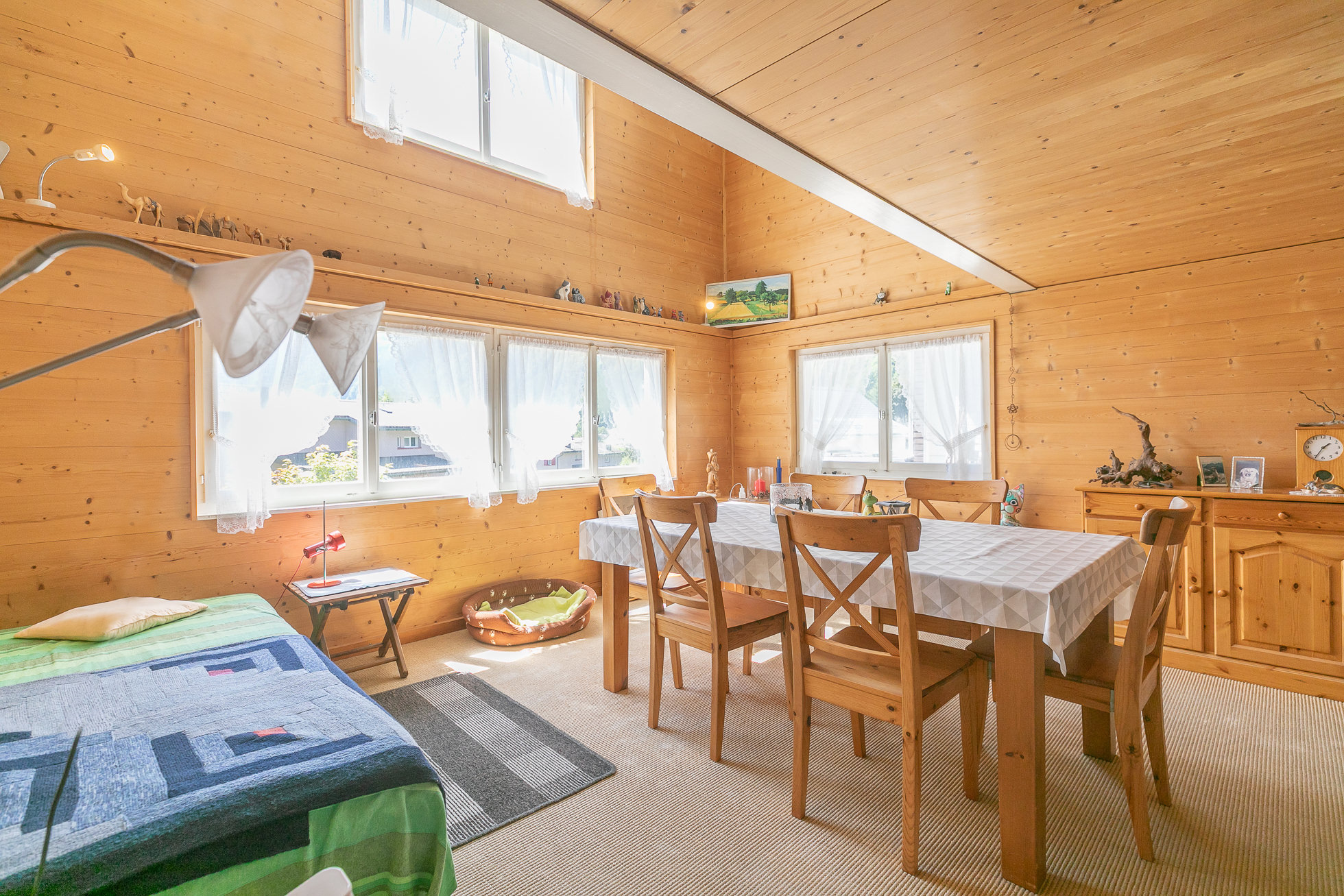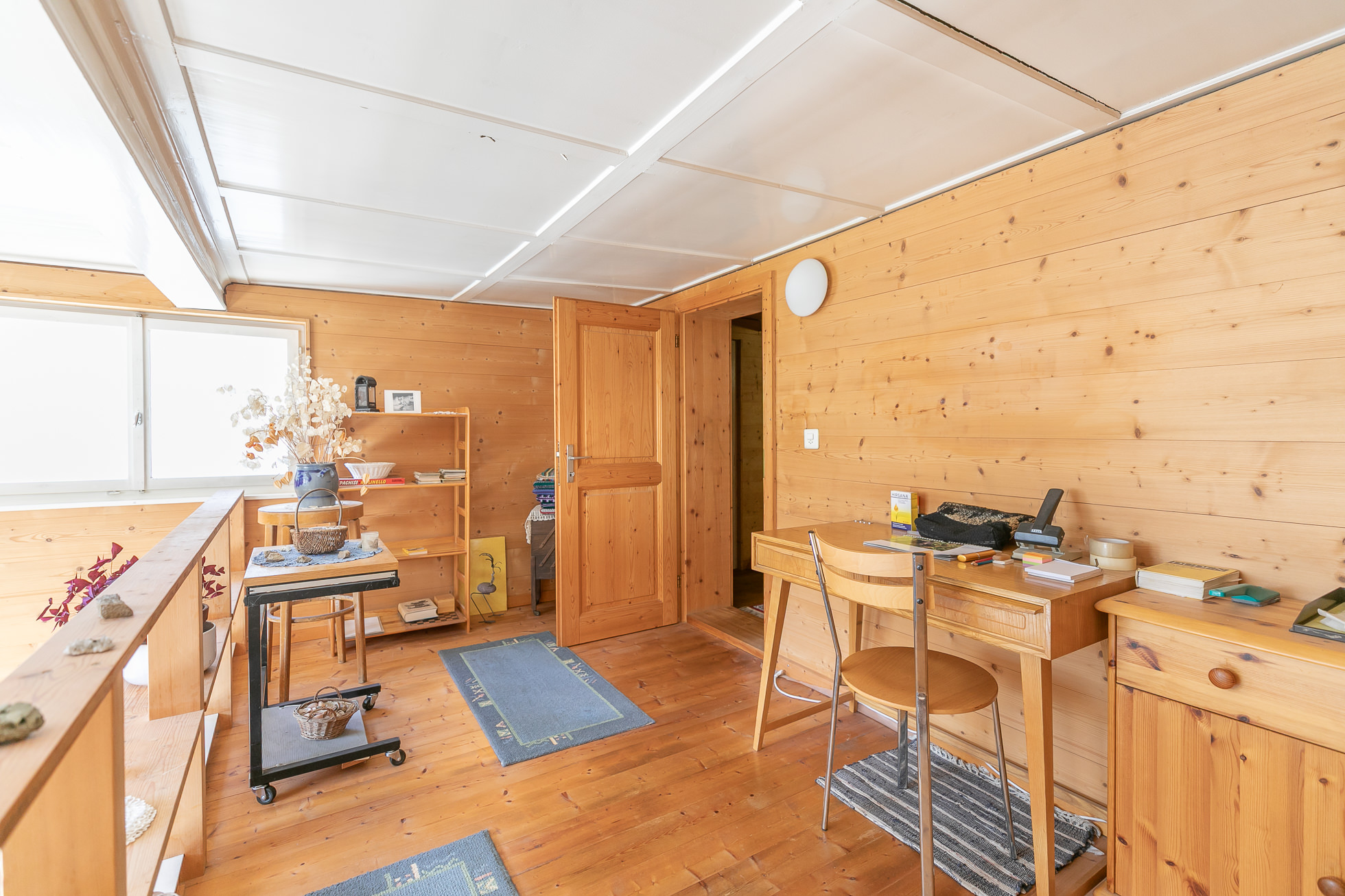 Im EG empfängt Sie das Haus mit erhöhtem Eingangsbereich und praktischem Abstellraum. Von hier gelangen Sie in das gemütliche Wohnzimmer. Nebenan befindet sich die funktionale Küche mit Essbereich und Anfeuerung für den Kachelofen. Weiter bietet das EG ein Gäste-WC. Das 1. OG wiederum überzeugt mit einem Schlafzimmer, Galerie, grosszügigem Badezimmer und einer kleinen, charmanten Laube. Im Dachgeschoss befinden sich zwei weitere Schlafzimmer und ein Abstellraum. Im UG steht Ihnen ein Kellerraum mit Tageslicht sowie ein Technikraum zur Verfügung. Direkt vor dem Haus liegt der südlich ausgerichtete Aussenbereich mit sonnigem Sitzplatz und Blumenbeeten. Öffentliche Parkmöglichkeiten sind in der direkten Umgebung verfügbar.
