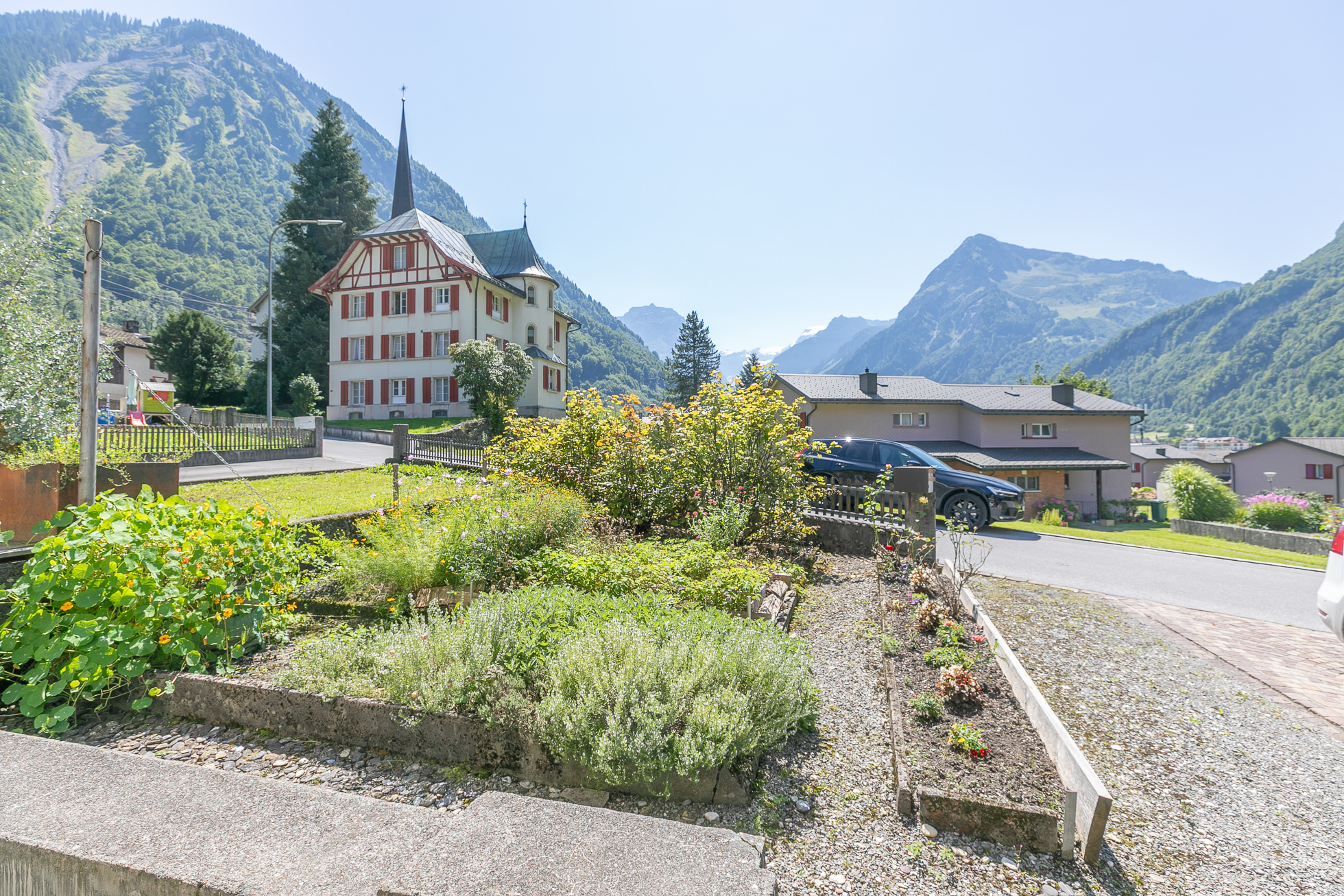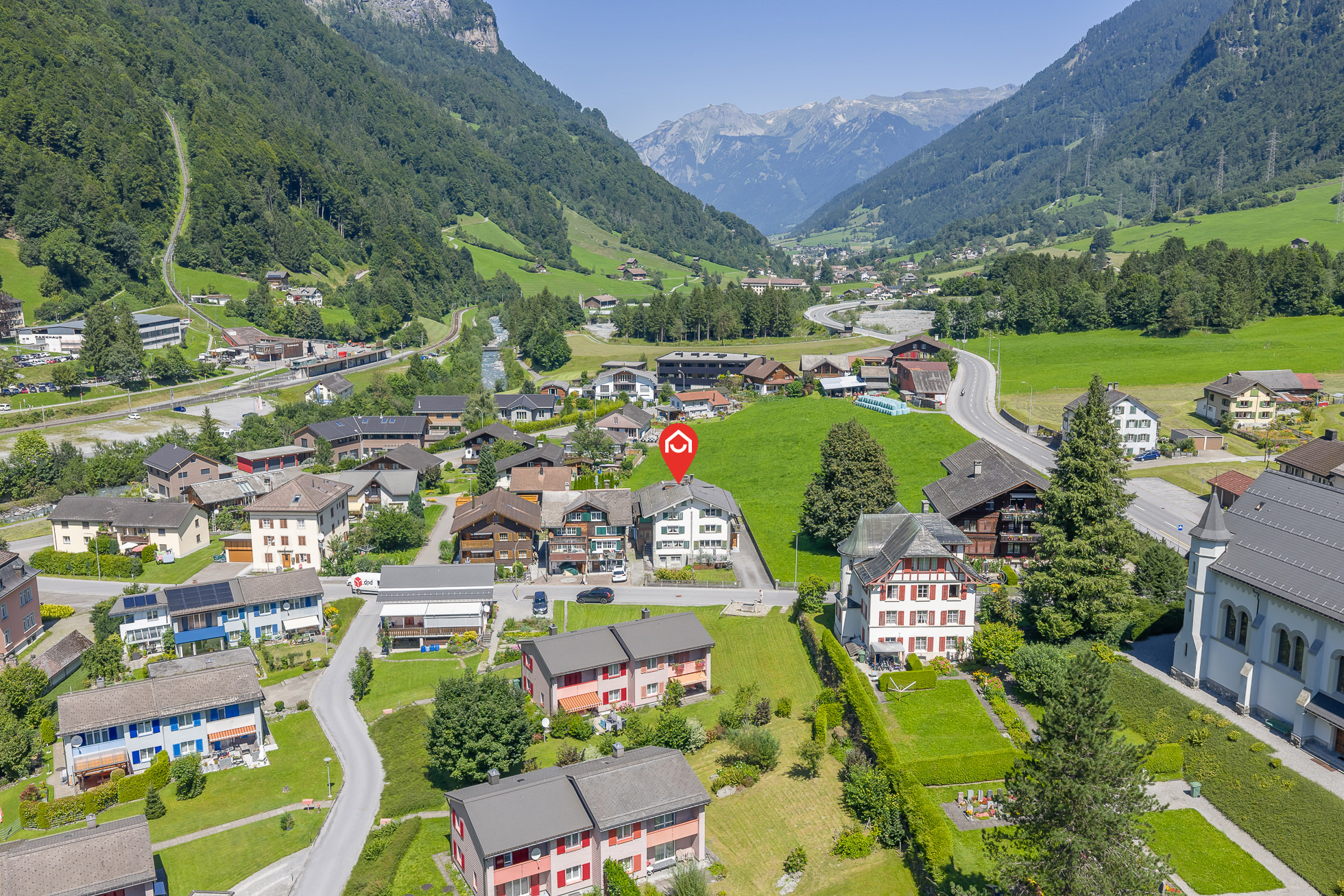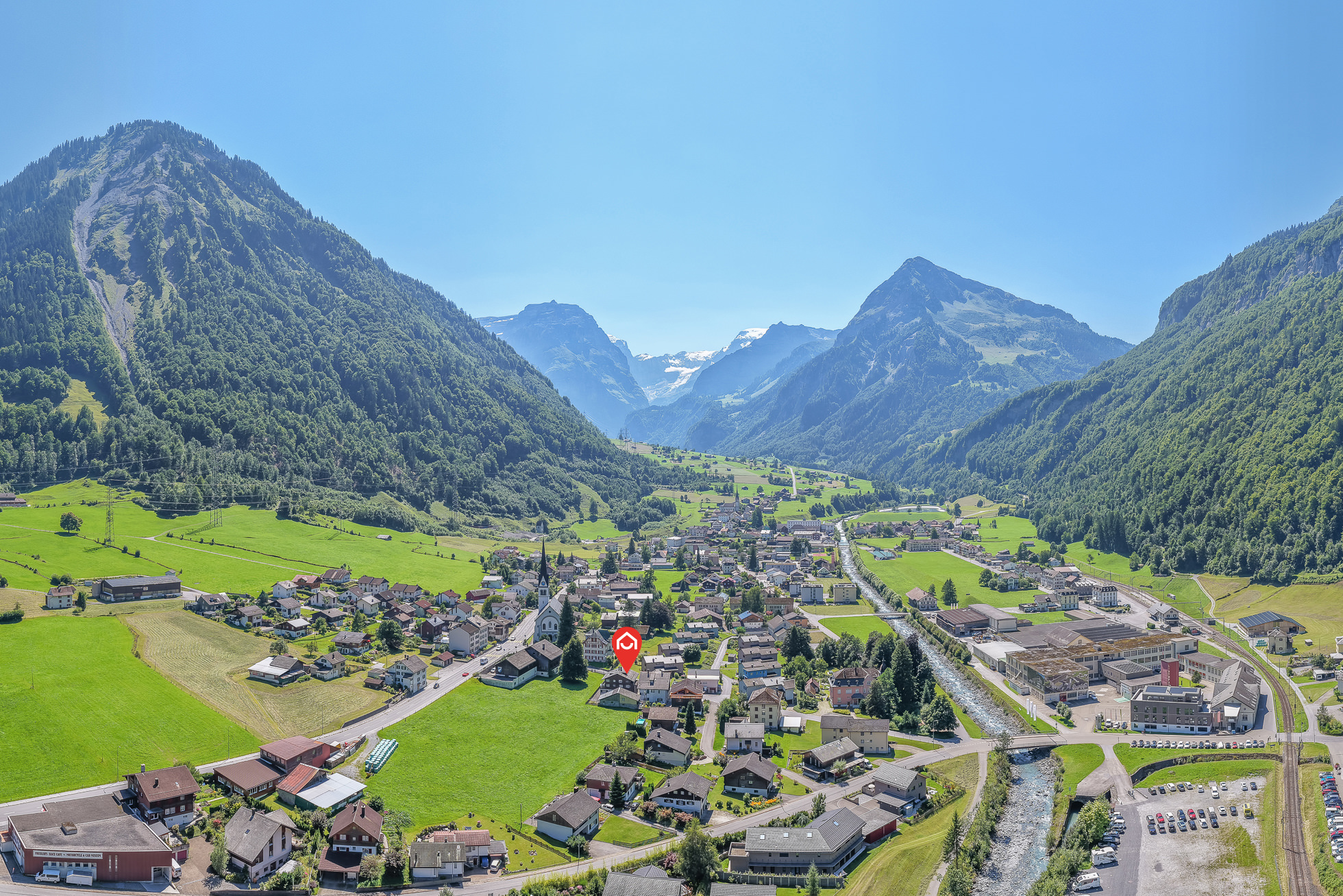 Das DEFH befindet sich an familienfreundlicher Wohnlage im idyllischen Dorfkern von Linthal. Es eignet sich mit dem gemütlichen Wohnprogramm und dem sonnigen Garten ideal für Paare oder Familien, welche sich einen naturnahen Rückzugsorts wünschen. Einkaufsmöglichkeiten, Restaurants, Schulen und Bahnhof sind innert wenigen Gehminuten erreichbar. Der Klausenpass, das Ski- und Erholungsgebiet Braunwald sowie Spazier- und Wanderwege befinden sich in unmittelbarer Umgebung. Glarus ist innert 20 Minuten und der Autobahnanschluss A3 innert 30 Minuten erreichbar. Mit der S25 gelangen Sie bequem ohne Umsteigen an den Zürich HB.