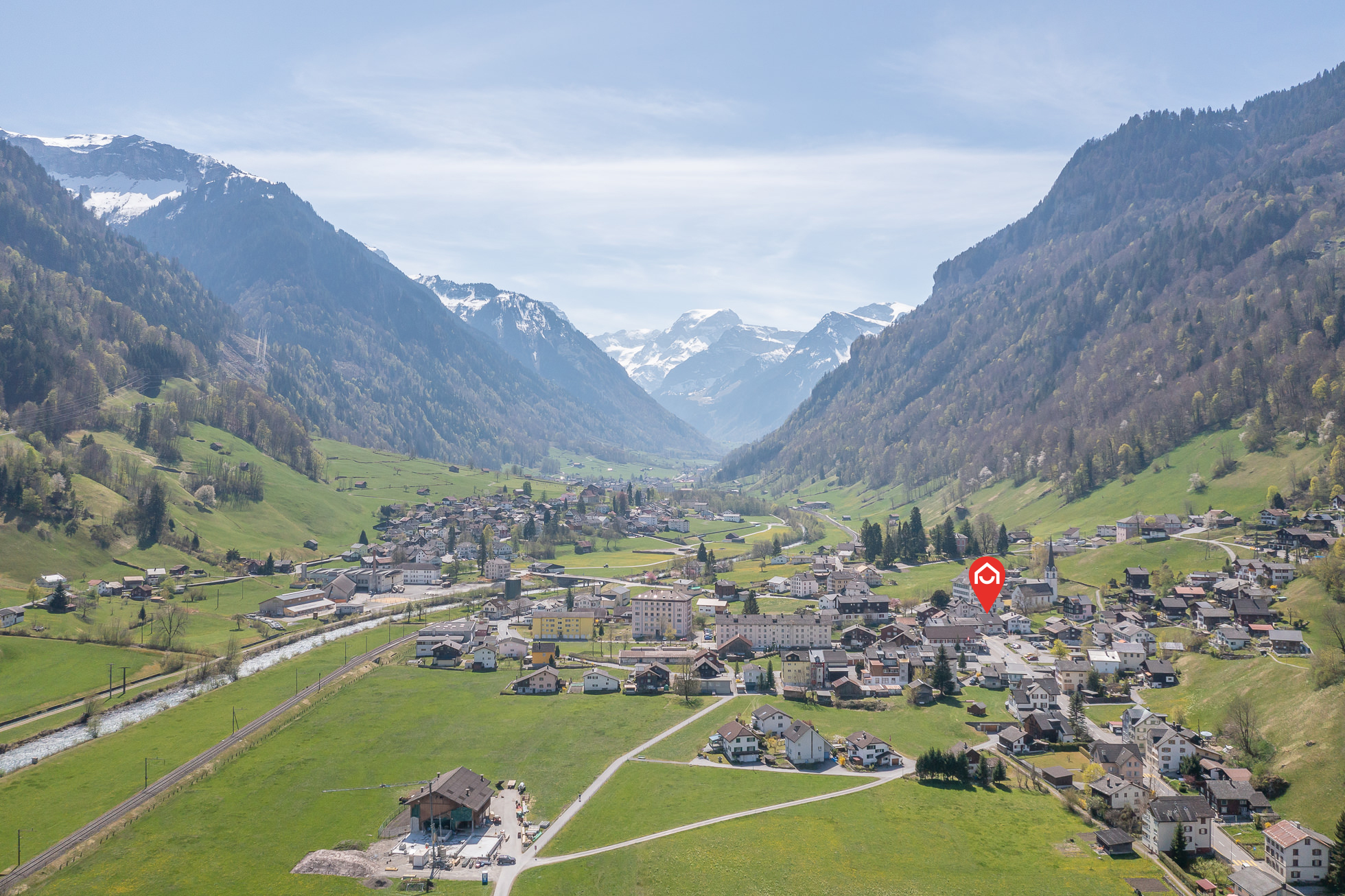 Das Mehrfamilienhaus liegt an zentraler Lage im Dorfkern von Luchsingen. Nebst dem Dorfladen im Ort bieten Schwanden und Glarus diverse Einkaufsmöglichkeiten in der Umgebung. Wander- und Fahrradwege, Langlaufloipe, die Brunnenbergbahn sowie der Bahnhof Luchsingen-Hätzingen befinden sich in nächster Nähe. Das Ski- und Erholungsgebiet Braunwald ist innert 10 Minuten erreichbar. Der Autobahnanschluss A3 ist 30 Minuten entfernt.