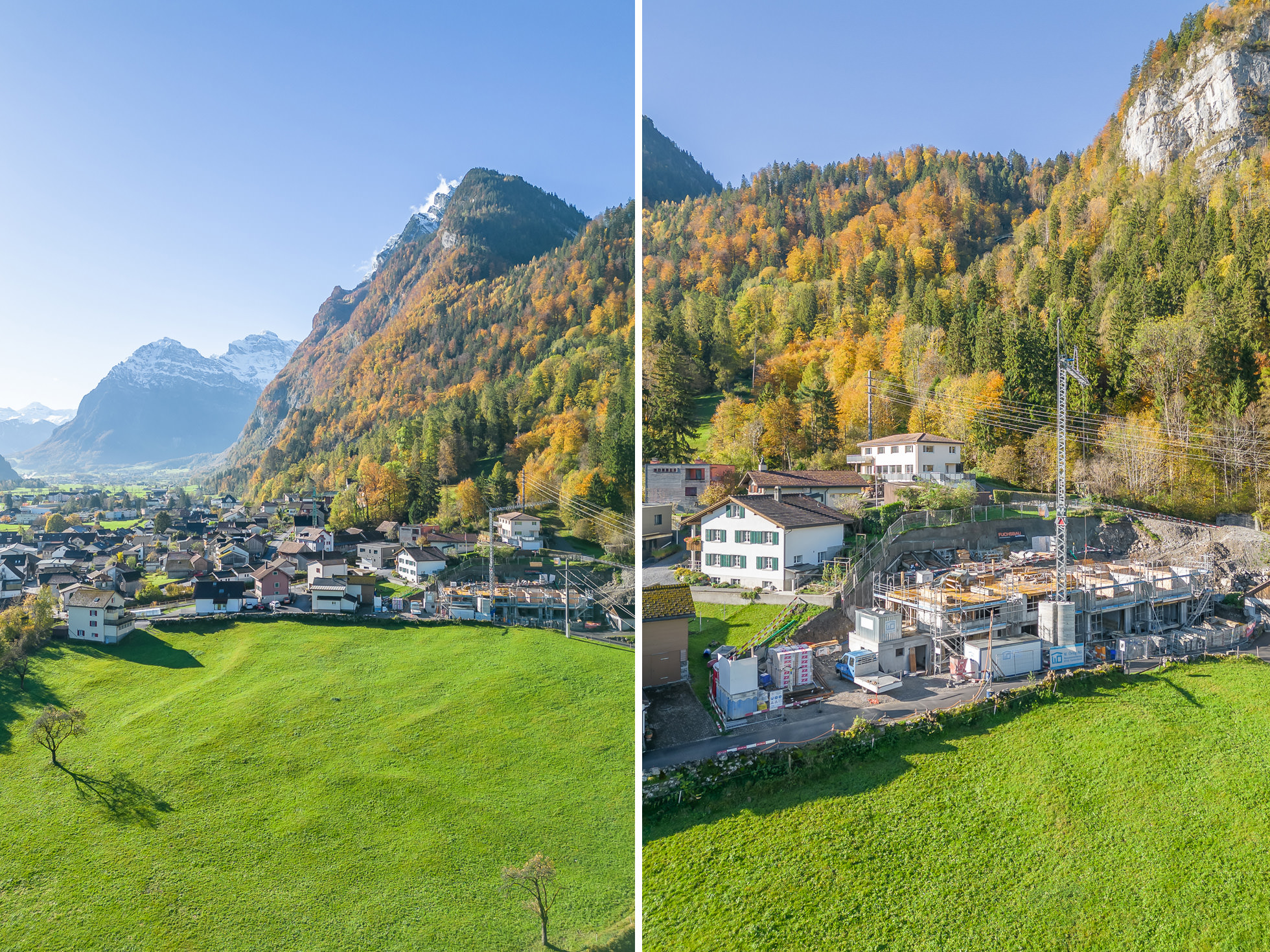 An leicht erhöhter und ruhiger Wohnlage am Niederberg mit Weitblick über die Landwirtschaftszone, entsteht in Näfels eine moderne familiäre Wohnsiedlung mit vier Reiheneinfamilienhäuser. Die Häuser überzeugen mit hochwertigem Innenausbau, durchdachten Grundrissen und geschützten Aussenbereichen.